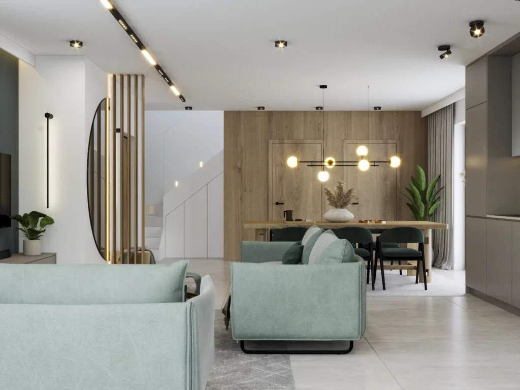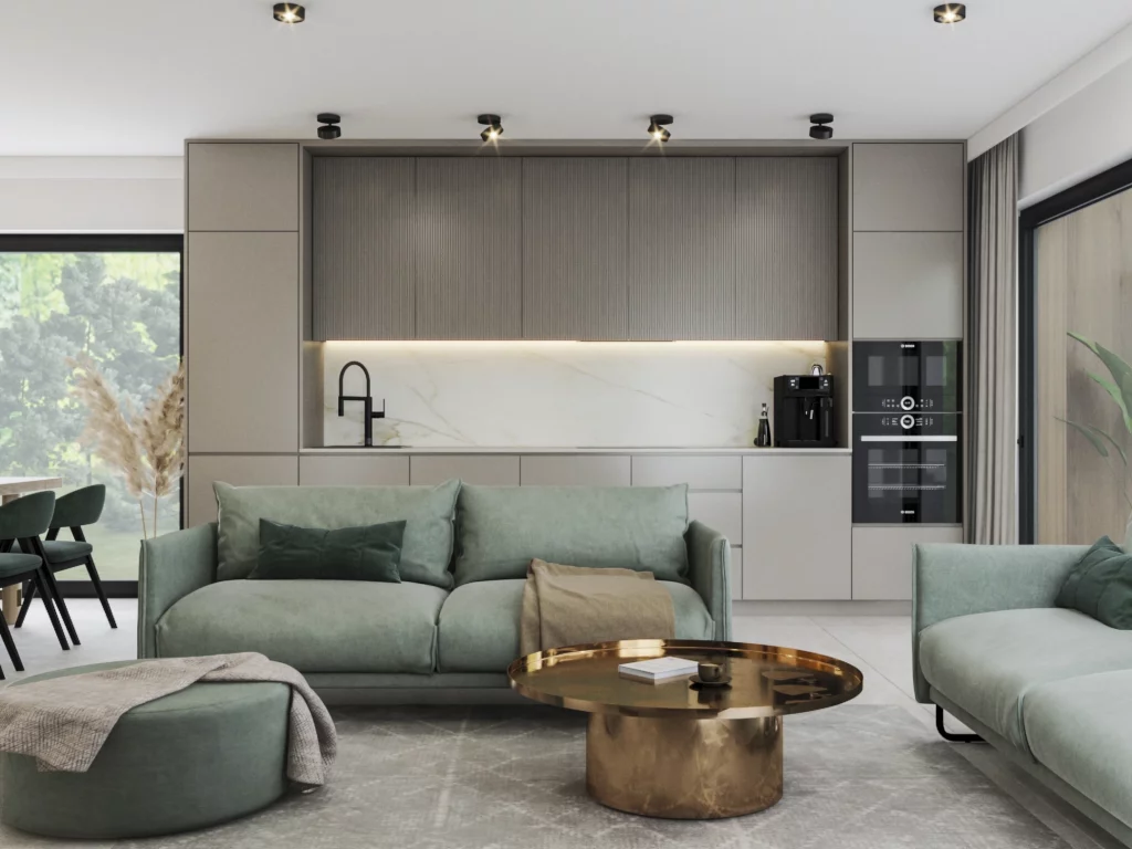 - standard wykończenia Q4 (m.in. szpachlowanie, osadzanie narożników aluminiowych, natrysk dwóch warstw gładzi finiszowej, szlifowanie mechaniczne, odpylanie, gruntowanie pod malowanie)