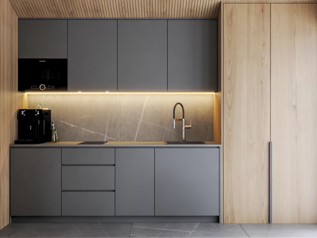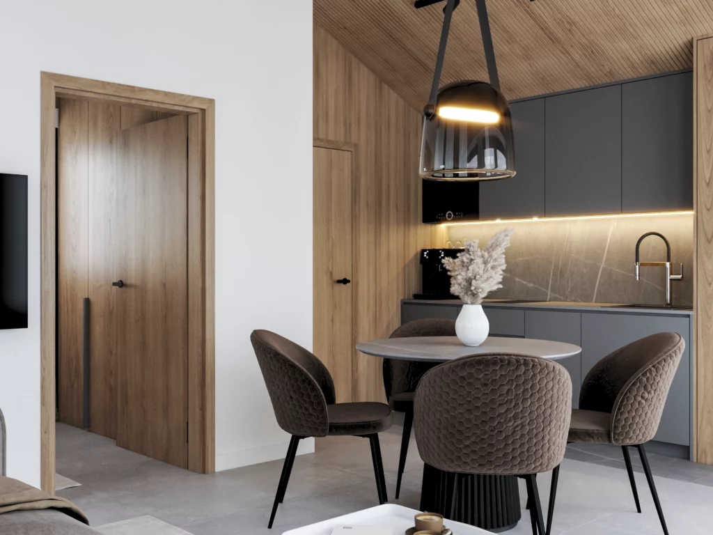 • standard wykończenia Q4 (m.in. szpachlowanie, osadzanie narożników aluminiowych, natrysk dwóch warstw gładzi finiszowej, szlifowanie mechaniczne, odpylanie, gruntowanie pod malowanie)